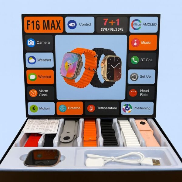 خرید ساعت هوشمند F16 MAX ست 7+1 با نمایشگر AMOLED و مکالمه بلوتوثی | اسمارت واچ فول امکانات در مارکت سون