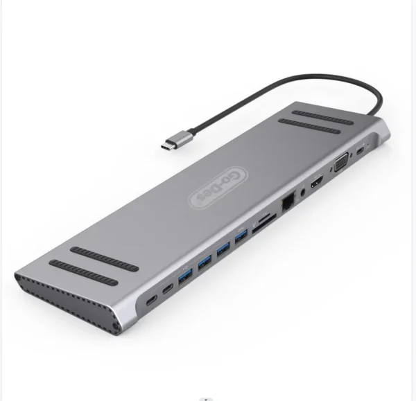 هاب GD-9120 با ارائه 14 پورت مختلف شامل USB-C، USB 3.0، HDMI، و کارت خوان SD، به شما این امکان را میدهد که دستگاههای مختلف را بهراحتی به یکدیگر متصل کنید. این ویژگی به شما کمک میکند تا تمام نیازهای اتصال خود را در یک دستگاه جمع کنید و دیگر نیازی به خرید چندین هاب یا کابل جداگانه نداشته باشید.